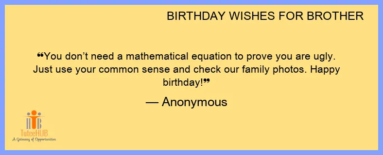 You don’t need a mathematical equation to prove you are ugly. Just use your common sense and check our family photos. Happy birthday!