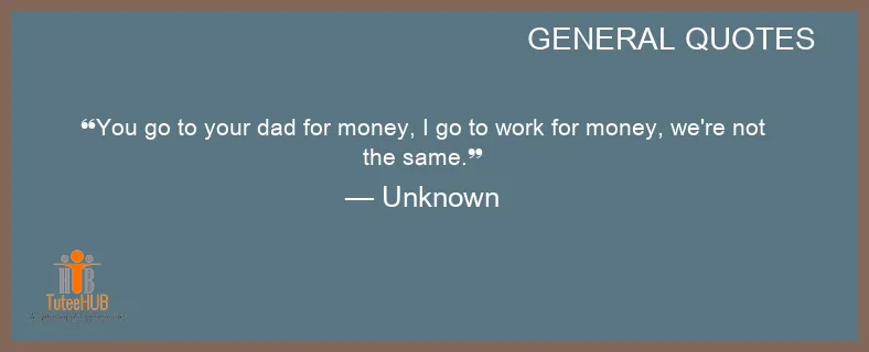 You GO to your DAD for MONEY, I go to WORK for money, we're not the same.
