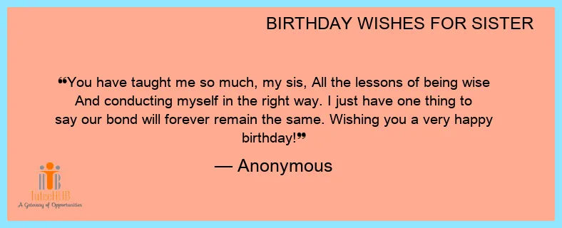 You have taught me so much, my sis, All the lessons of being wise And conducting myself in the right way. I just have one thing to say our bond will forever remain the same. Wishing you a very happy birthday!