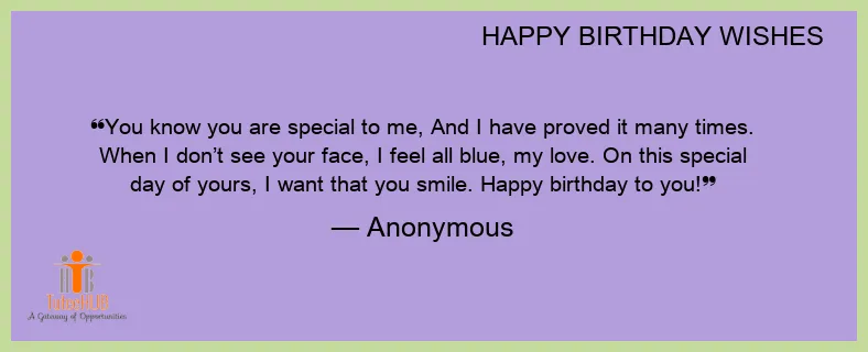 You know you are special to me, And I have proved it many times. When I don’t see your face, I feel all blue, my love. On this special day of yours, I want that you smile. Happy birthday to you!