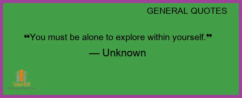 You MUST be ALONE to EXPLORE WITHIN yourself.