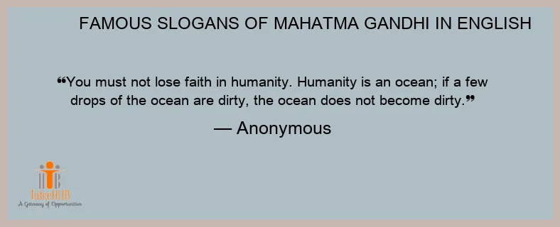 You must not lose faith in humanity. Humanity is an ocean; if a few drops of the ocean are dirty, the ocean does not become dirty.