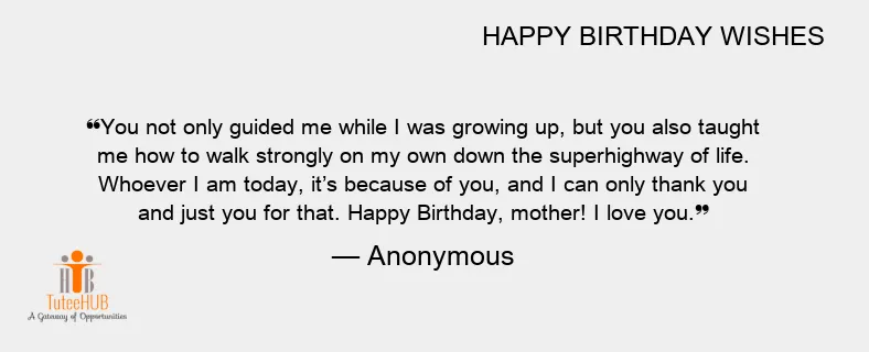 You not only guided me while I was growing up, but you also taught me how to walk strongly on my own down the superhighway of life. Whoever I am today, it’s because of you, and I can only thank you and just you for that. Happy Birthday, mother! I love you.