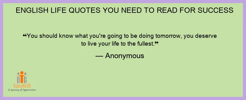 You should know what you're going to be doing tomorrow, you deserve to live your life to the fullest.
