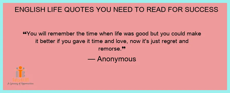 You will remember the time when life was good but you could make it better if you gave it time and love, now it's just regret and remorse.
