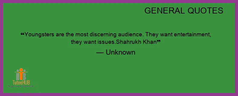 YOUNGSTERS are the most DISCERNING AUDIENCE. They WANT ENTERTAINMENT, they want issues.Shahrukh Khan