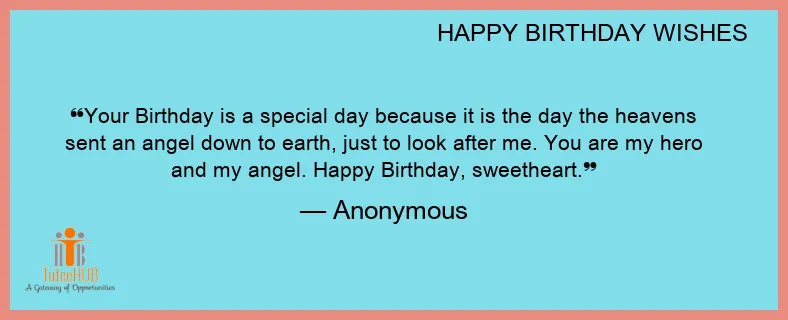 Your Birthday is a special day because it is the day the heavens sent an angel down to earth, just to look after me. You are my hero and my angel. Happy Birthday, sweetheart.