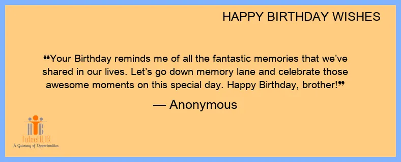 Your Birthday reminds me of all the fantastic memories that we’ve shared in our lives. Let’s go down memory lane and celebrate those awesome moments on this special day. Happy Birthday, brother!