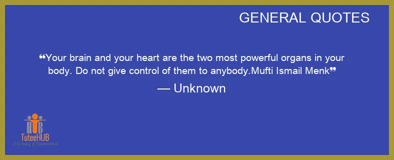 Your BRAIN and your heart are the TWO most powerful ORGANS in your BODY. Do not give CONTROL of them to anybody.Mufti Ismail Menk