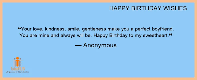 Your love, kindness, smile, gentleness make you a perfect boyfriend. You are mine and always will be. Happy Birthday to my sweetheart.