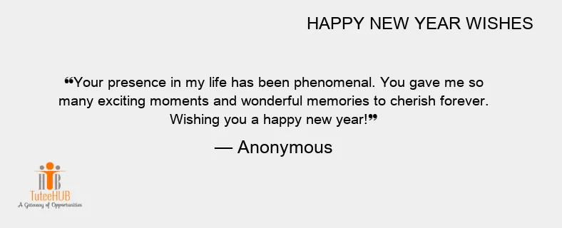 Your presence in my life has been phenomenal. You gave me so many exciting moments and wonderful memories to cherish forever. Wishing you a happy new year!