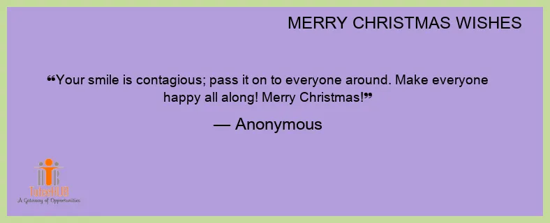 Your smile is contagious; pass it on to everyone around. Make everyone happy all along! Merry Christmas!