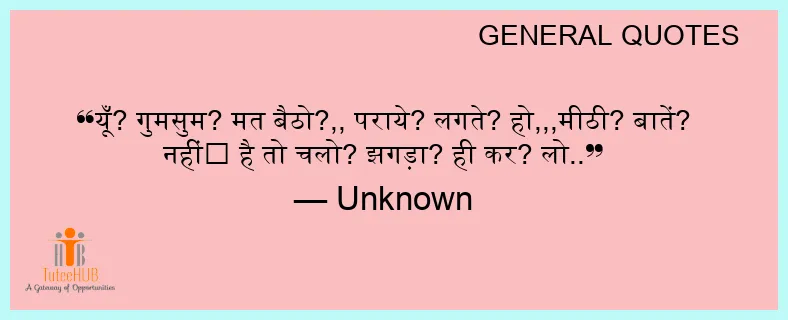 यूँ? गुमसुम? मत बैठो?,, पराये? लगते? हो,,,मीठी? बातें? नहीं❌ है तो चलो? झगड़ा? ही कर? लो..