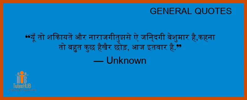 यूँ तो शिकायतें और नाराजगीतुझसे ऐ जिन्दगी बेशुमार है,कहना तो बहुत कुछ हैखैर छोड़, आज इतवार है.