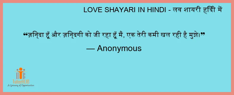 ज़िन्दा हूँ और ज़िन्दगी को जी रहा हूँ मैं, एक तेरी कमी खल रही है मुझे।