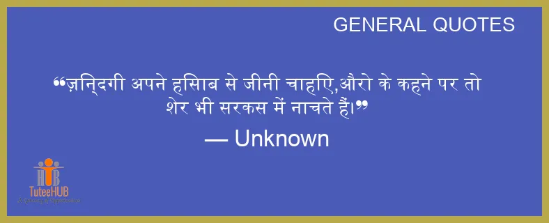 ज़िन्दगी अपने हिसाब से जीनी चाहिए,औरो के कहने पर तो शेर भी सरकस में नाचते हैं।