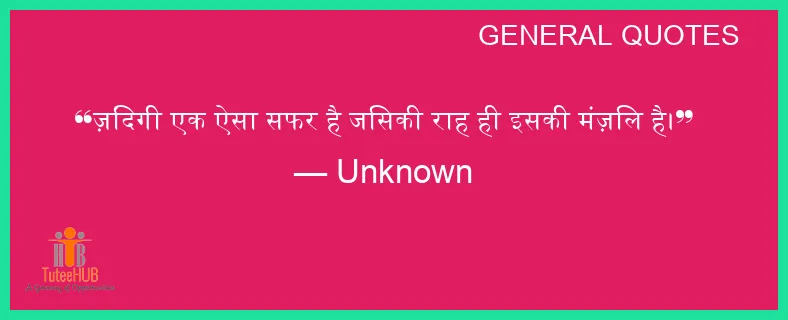 ज़िंदगी एक ऐसा सफर है जिसकी राह ही इसकी मंज़िल है।