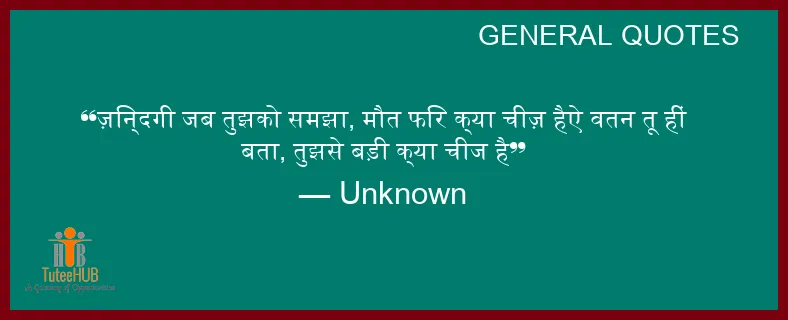 ज़िन्दगी जब तुझको समझा, मौत फिर क्या चीज़ हैऐ वतन तू हीं बता, तुझसे बड़ी क्या चीज है