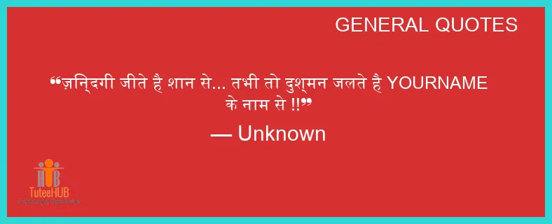 ज़िन्दगी जीते है शान से... तभी तो दुश्मन जलते है YOURNAME के नाम से !!