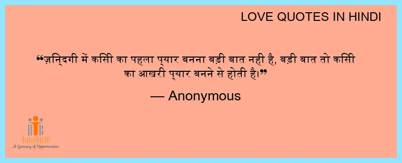 ज़िन्दगी में किसी का पहला प्यार बनना बड़ी बात नही है, बड़ी बात तो किसी का आखरी प्यार बनने से होती है।