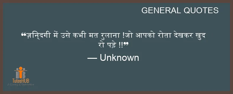 ज़िन्दगी में उसे कभी मत रुलाना !जो आपको रोता देखकर खुद रो पड़े !!