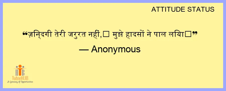 ज़िन्दगी तेरी जरुरत नहीं,😔 मुझे हादसों ने पाल लिया😑