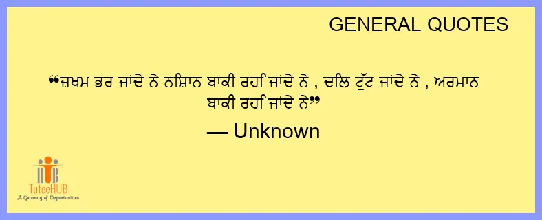 ਜ਼ਖਮ ਭਰ ਜਾਂਦੇ ਨੇ ਨਿਸ਼ਾਨ ਬਾਕੀ ਰਹਿ ਜਾਂਦੇ ਨੇ , ਦਿਲ ਟੁੱਟ ਜਾਂਦੇ ਨੇ , ਅਰਮਾਨ ਬਾਕੀ ਰਹਿ ਜਾਂਦੇ ਨੇ